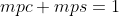 הנטייה השולית לצרוך הינה המשלים ל-1 לנטייה השולית לחסוך (mps), כך שתמיד מתקיים: