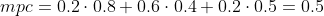 הנטייה השולית לצרוך של משפחות מסוג א' הינה 0.8, הנטייה השולית לצרוך של משפחות מסוג ב' הינה 0.4 והנטייה השולית לצרוך של משפחות מסוג ג' הינה 0.5. לפיכך, הנטייה השולית לצרוך במשק הינה: